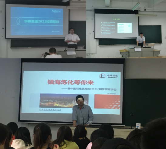 宣讲会开始,王辉向各企业代表的到来表示欢迎和感谢,针对当前的就业形势与就业政策,对公司化工专业毕业生的就业情况作了简单的介绍和分析。随后,各企业负责人通过播放宣传片、PPT展示、面对面交流的方式从关于我们、企业文化、企业员工培养模式、企业目前的发展状况及发展前景与同学们作了详尽的分享。