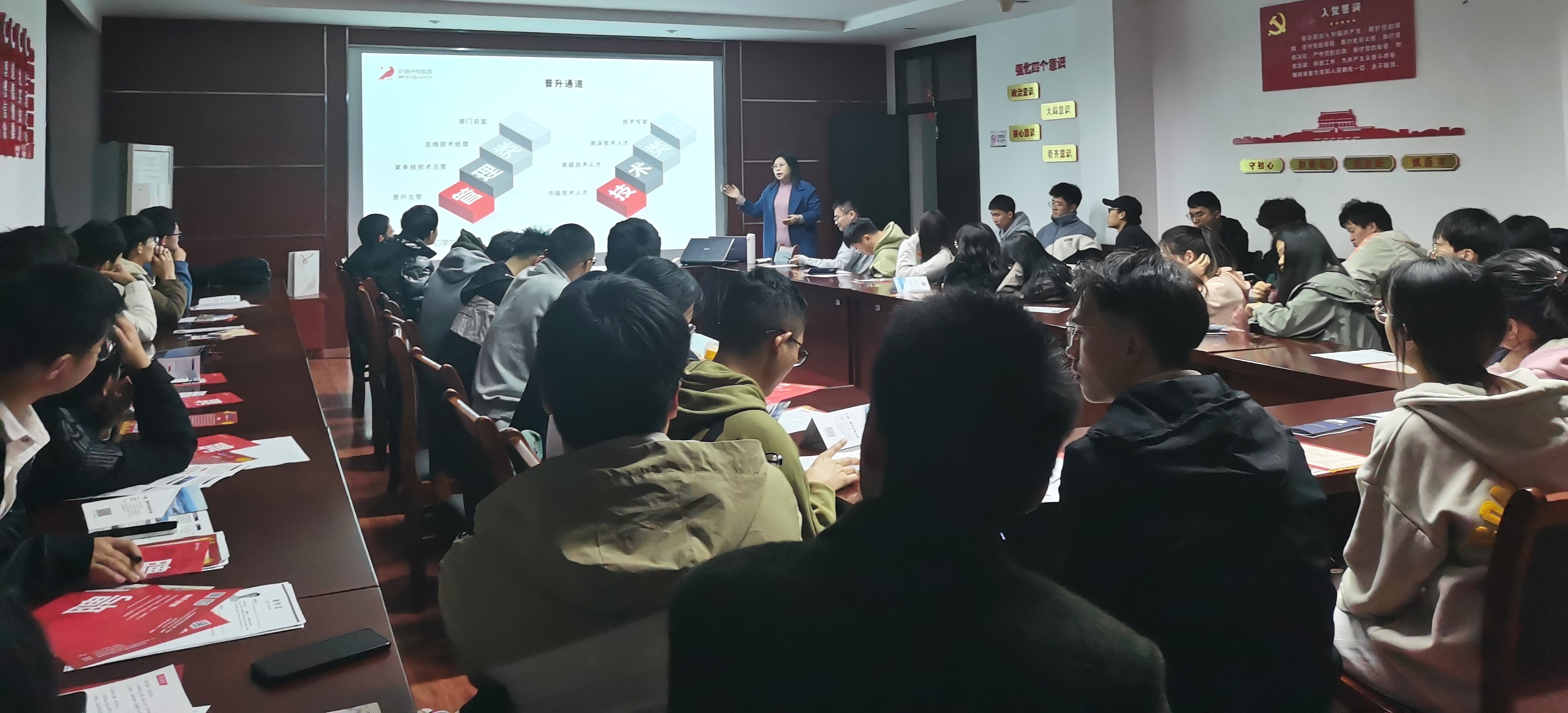 22日全院教职工大会上,院领导发动全体教职工特别是博士工作站老师及论文指导老师积极主动提供优质就业信息、指导员工积极就业。目前,已经有10余名老师提供了本人所在博士工作站企业的岗位需求信息;已经组织了两期专场宣讲会,8家优质企业到校宣讲;已组织两次本地企业参观考察;帮助心理健康关注员工实现成功就业1人次。
